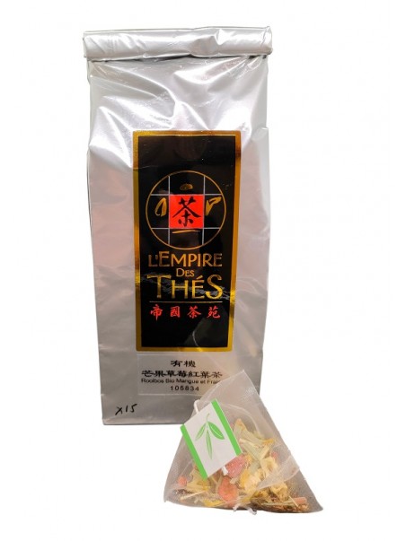 Paquets de 15 sachets individuels biodégradables de Rooibos à la mangue et à la fraise