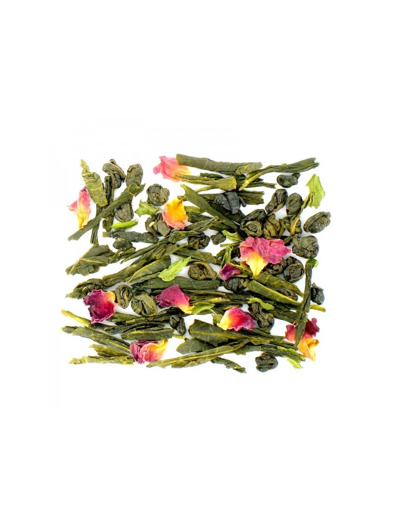 Subtil mélange de Thé Vert, de Menthe et de pétales de Rose.