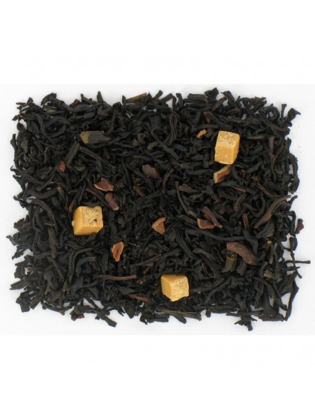 Thé gourmand sur base de Thé Rouge, au délicieux parfum de Tiramisu, parsemé de morceaux de Cacao et de Caramel.