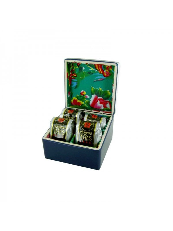 Succombez à notre coffret fleuri et fruité avec notre sélection de 4 Thés verts parfumés : 1001 nuits (la fraîcheur de la menthe et la douceur des pétales de roses), Douceur de Yunnan (la fraîcheur tropicale qui associe mangue et ananas), thé vert à la rose (un thé simplement agrémenté de pétales de roses), Fleur de mai (un rafraîchissant mélange de bergamote et de mangue).